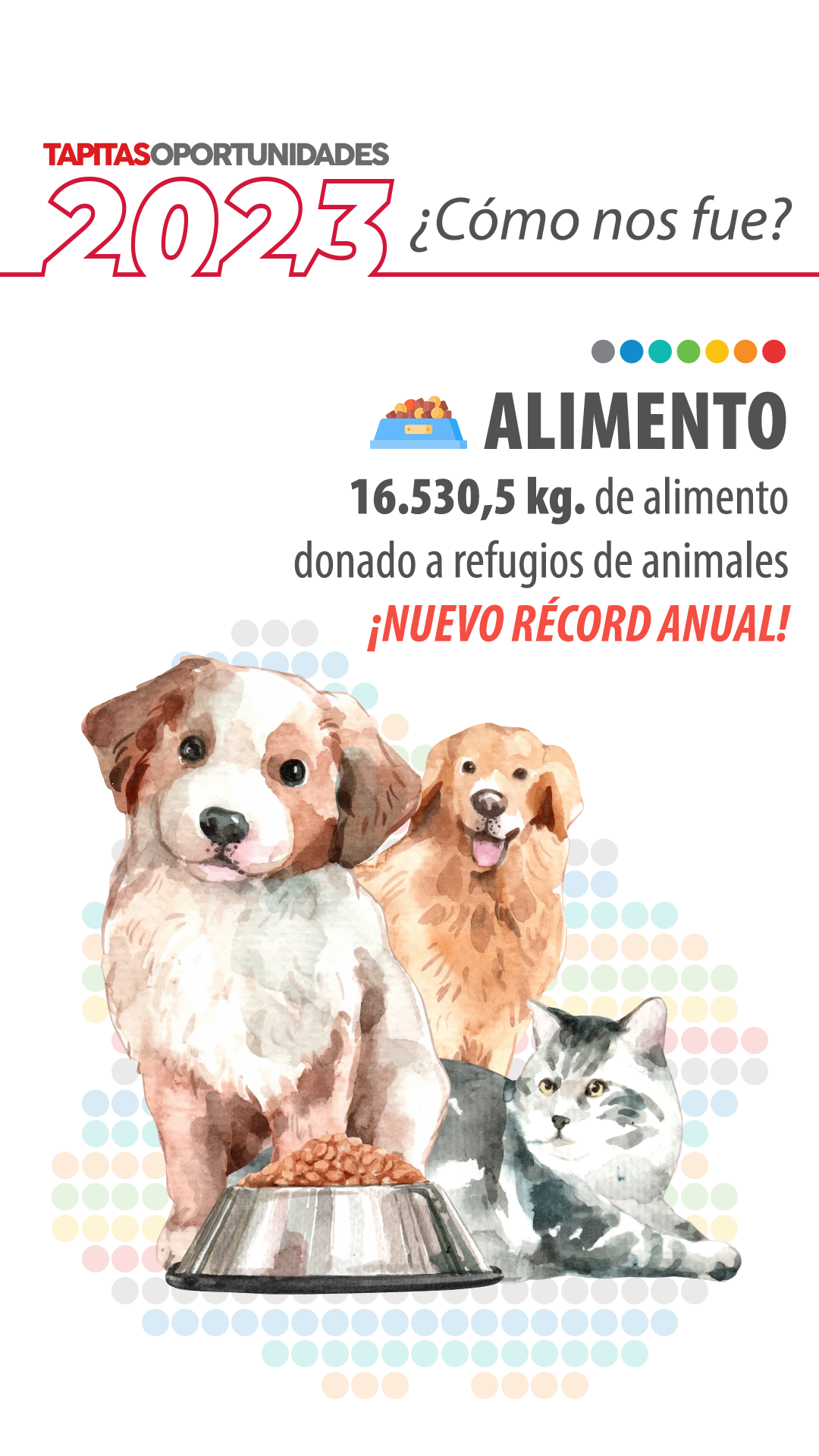 Con los fondos recaudados del reciclaje de tapitas, financiamos donaciones de alimentos balanceados, medicación, materiales de construcción, abrigos y otros suministros esenciales para refugios de animales en todo el país. Estas donaciones se distribuyen equitativamente entre los refugios que forman parte de nuestro Programa de Ayuda, basándonos en la cantidad de animales que cada uno alberga.