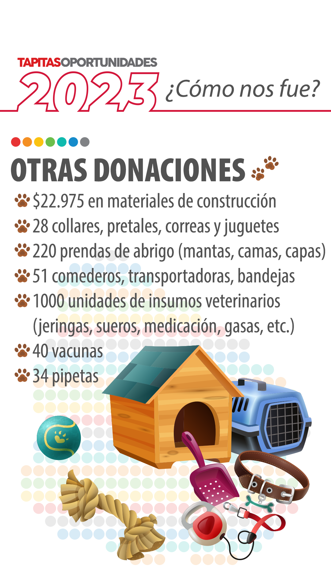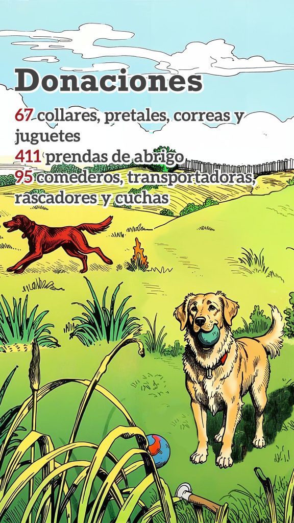 - Las donaciones incluyen alimentos balanceados, medicación, materiales de construcción, abrigo y otros suministros necesarios.