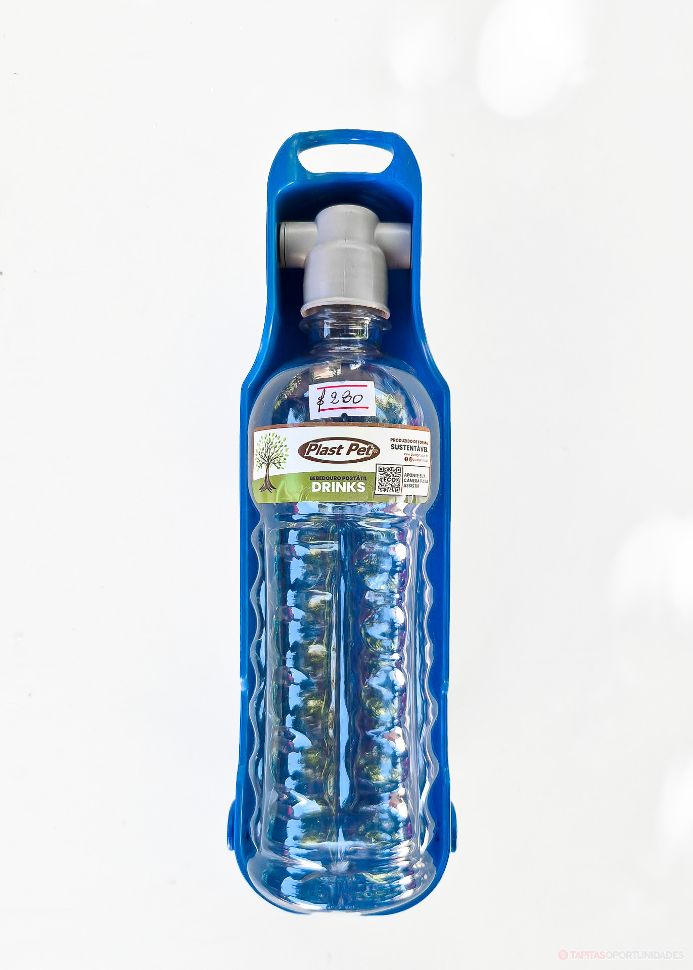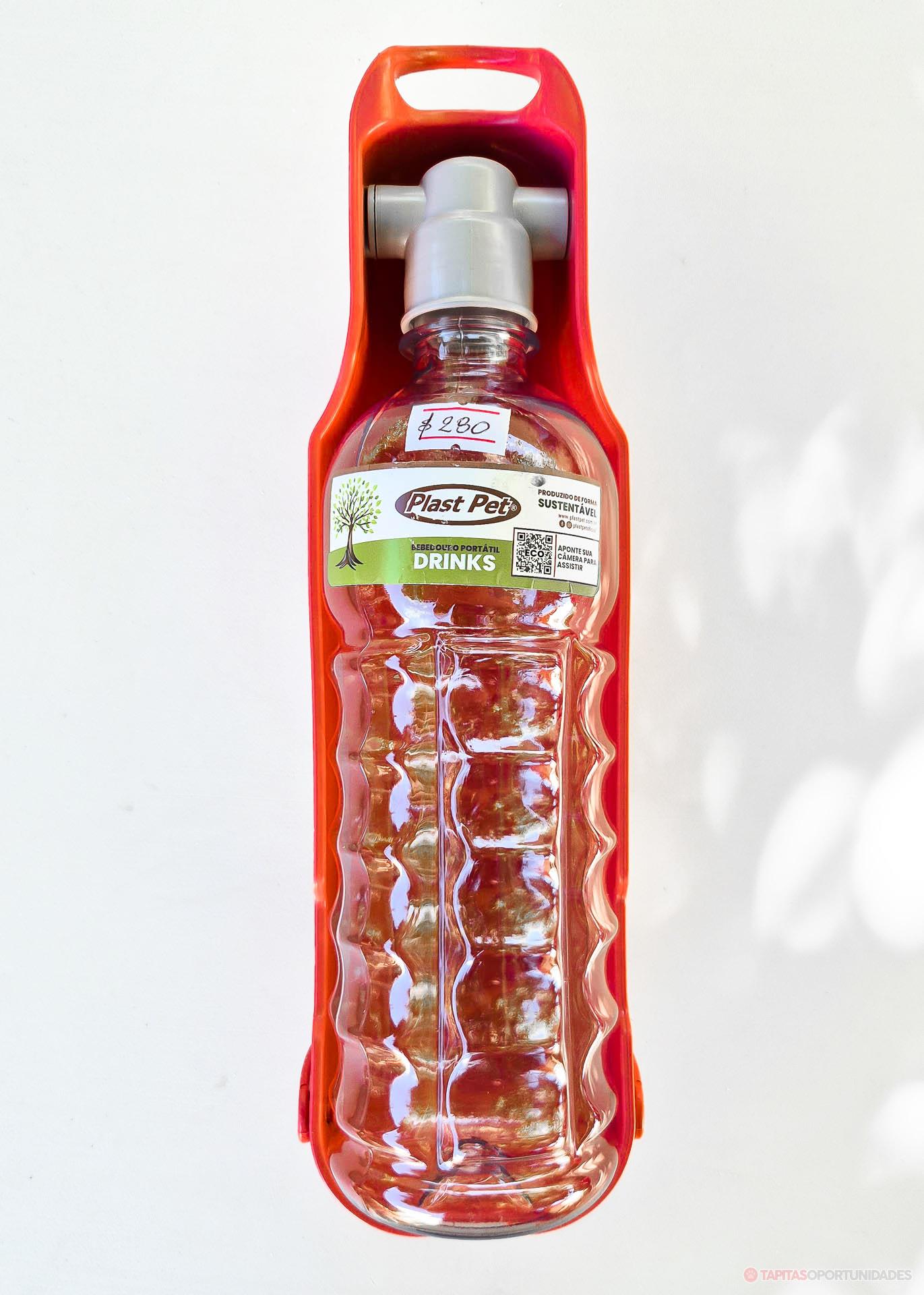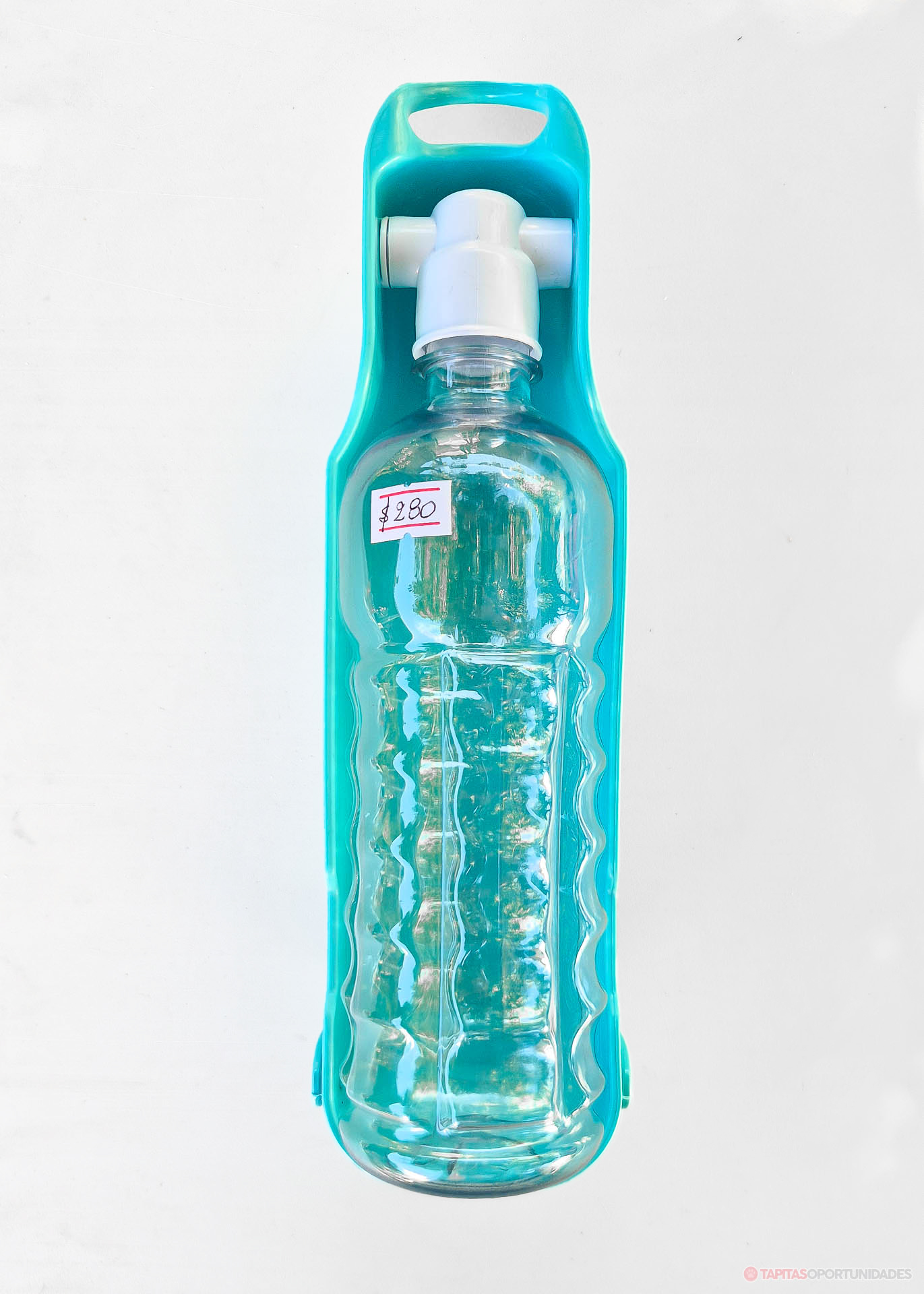 Este bebedero portátil de 500 cc te deja llevar agua de forma cómoda y darle de tomar en cualquier momento, sin complicaciones. Su diseño integra botella y recipiente en una sola pieza, para que puedas servir agua fácilmente estés donde estés.