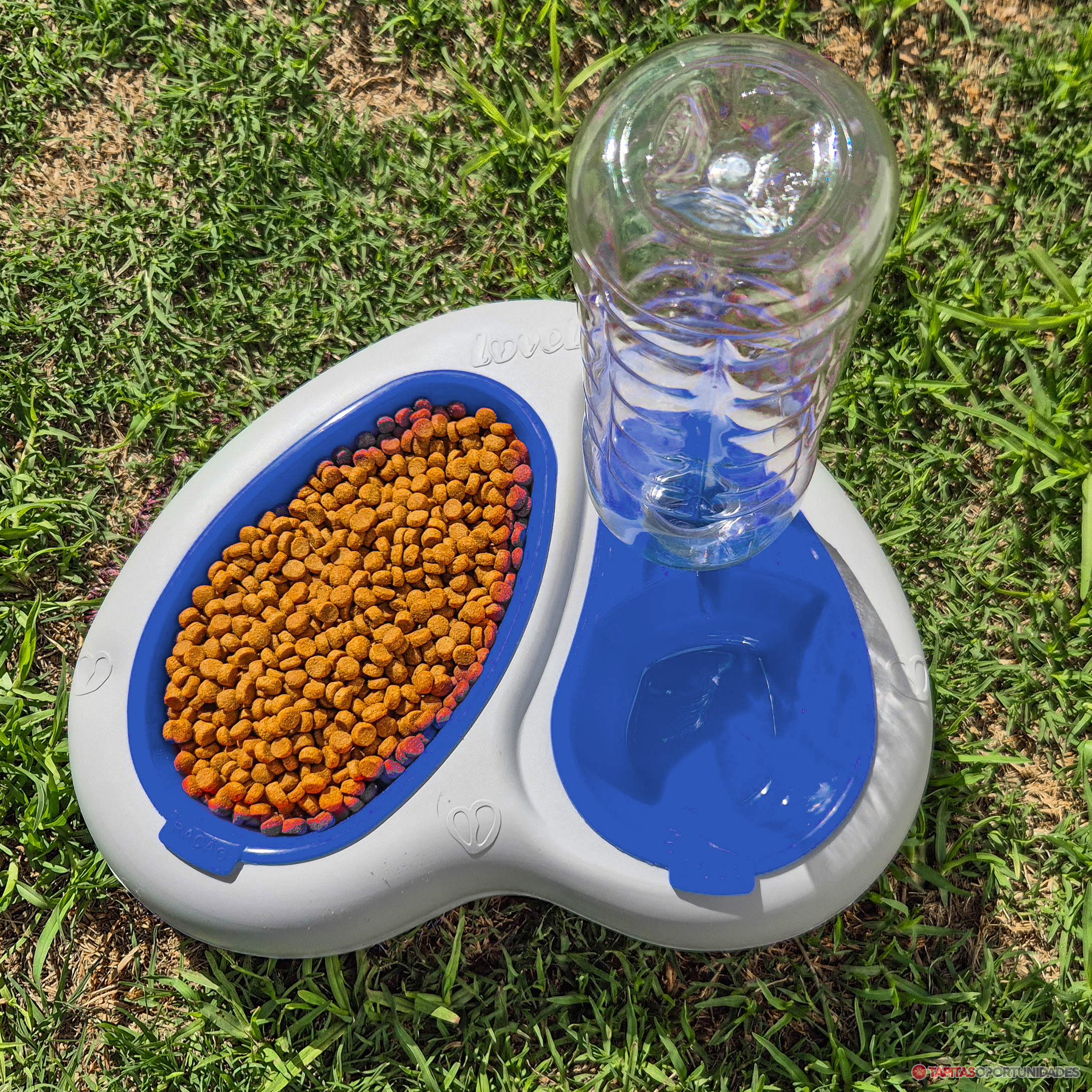 Simplificá la rutina de tu mascota con este comedero + bebedero 2 en 1, diseñado para ofrecer comodidad, orden y acceso constante a agua fresca.