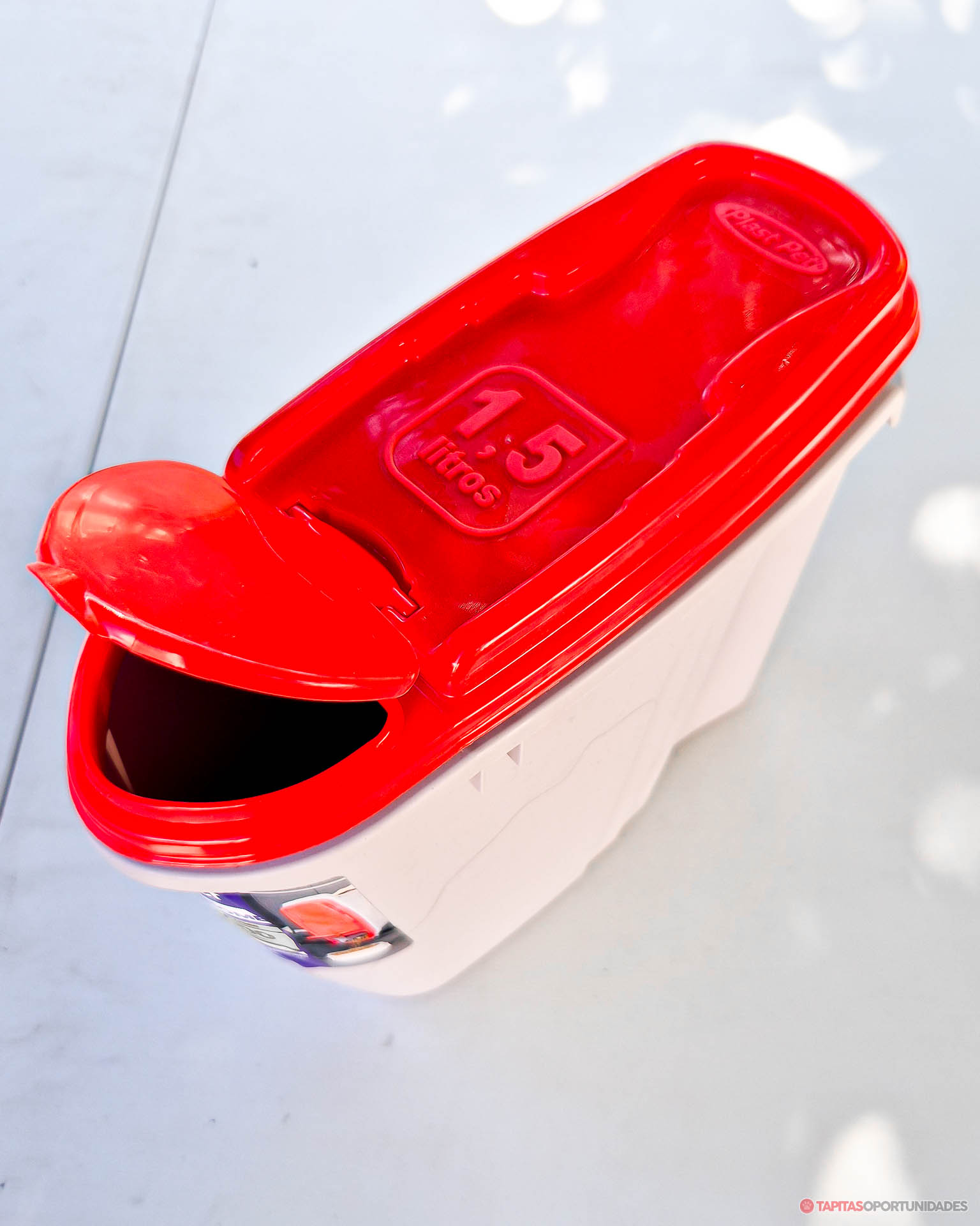 Ayuda a conservar mejor el alimento y evitar derrames o exposición innecesaria al aire. La tapa con apertura facilita el servido, haciendo el día a día mucho más práctico.